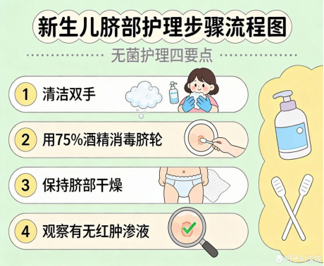 脐带残端每天用75%酒精消毒,保持干燥,避免被尿布遮盖。宝宝衣物应宽松柔软,洗净后阳光下晾晒。