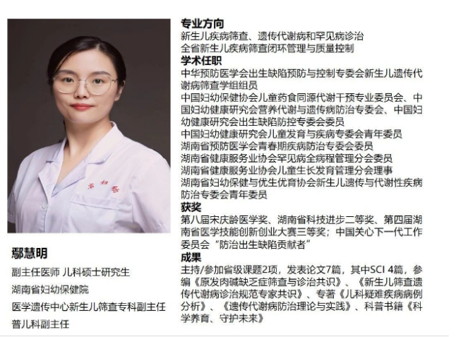 为助力儿童健康成长,让省级优质医疗资源直达家门口,衡阳市妇幼保健院儿童保健科特别邀请:湖南省妇幼保健院儿童遗传代谢病诊治专家 鄢慧明教授团队开展大型公益义诊及家庭负担调研活动!这是一次难得的机会,让您的孩子在家门口就能获得省级权威专家的专业评估与建议!