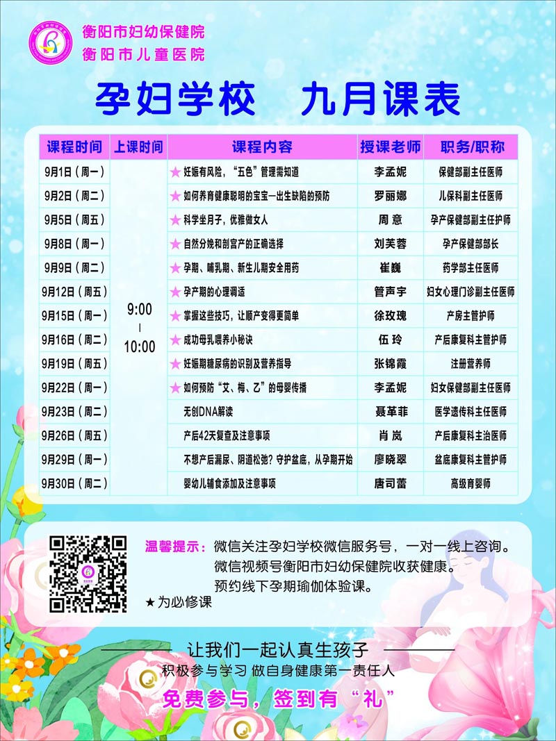 【卓越服务】9月份孕妇学校移动课堂课表(免费听课)