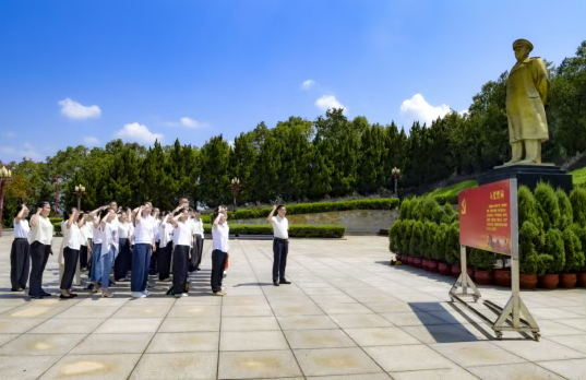 在罗荣桓铜像纪念广场,全体党员庄严宣誓,老党员重温入党誓词,新党员进行入党宣誓,表达对党的忠诚和为共产主义事业奋斗终身的决心。