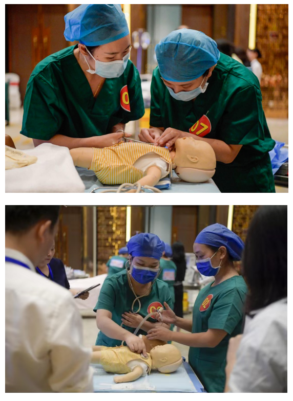 “产妇产后出血,血压持续下降!”“快!建立第二条静脉通路,呼叫上级医生!”“新生儿心率55次/分,立即给予有效正压通气!”,这是全市母婴安全急救职业技能竞赛现场紧张的一幕。