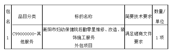 项目名称:衡阳市妇幼保健院后勤零星维修、改造、装饰施工服务外包项目