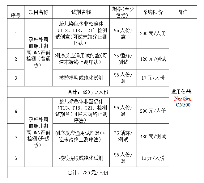 1.3.1衡阳市妇幼保健院(衡阳市儿童医院)对孕妇外周血胎儿游离DNA产前筛查试剂等相关试剂进行遴选。