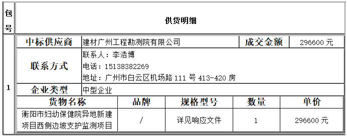 衡阳市妇幼保健院的衡阳市妇幼保健院异地新建项目西侧边坡支护监测项目竞争性磋商采购项目于2026年3月10日结束,现将中标(成交)结果公告如下: